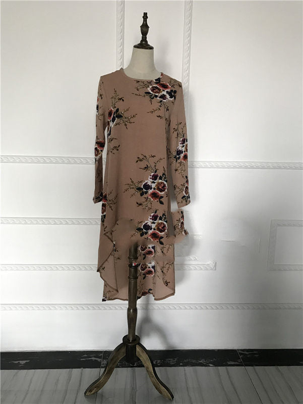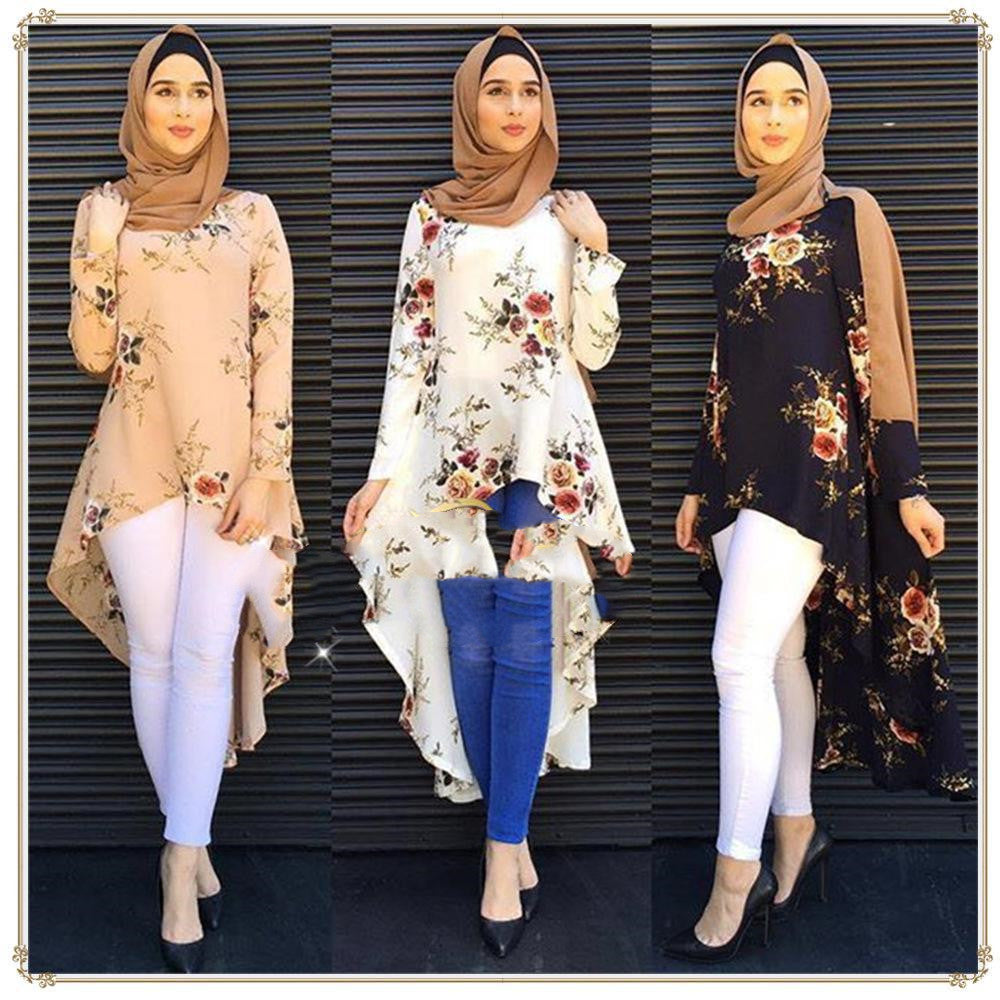 Muslim Long Sleeve Printed Shirt Women's Loose Top Hem Top